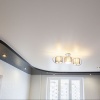 Отличительные особенности криволинейного потолка. Если сделать зонирование помещения при помощи двухуровневого потолка не представляется возможным, в этом случае на помощь приходит комбинирование полотен на одной плоскости. Одноуровневый натяжной потолок с комбинацией цветов и фактур – прекрасное решение для квартир-студий, когда общее пространство хочется визуально разделить на несколько зон. Если обыграть криволинейную спайку и на полу, то зонирование будет более чётким и законченным. На криволинейных двухуровневых натяжных потолках многие комбинируют разные фактуры покрытия – матовую и глянцевую, матовую и сатиновую, замшевую и сатиновую и др.