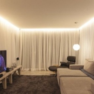 Отличительные особенности потолка с подсветкой. В качестве лучшего материала для оборудования потолка с подсветкой служат ПВХ-потолки с гарпунной системой крепления. Гарпун позволяет легко снять потолочное полотно для замены элементов освещения, а затем вернуть его на место. Контурная подсветка хорошо сочетается с матовой натяжной поверхностью, не создает лишних бликов, отвлекающих внимание, и равномерно распределяет свет по всему потолку. Вариант с подсветкой по периметру хорош для потолка в гостиной или столовой. Именно здесь чаще всего собираются за большим столом или телевизором, и вариант мягкого освещения, без использования центральной люстры, является гармоничным для такого рода времяпровождений. К тому же интенсивность светодиодного освещения можно регулировать, создавая необходимый уровень комфорта.