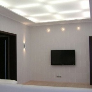 Покрытие позволяет «поиграть» с пространством, зонировав его и визуально увеличив высоту комнаты. С помощью нижнего уровня можно полностью скрыть различные коммуникации и современные системы кондиционирования. С помощью двухуровневого потолка также возможно сделать помещение более светлым, ведь он предоставляет сразу три плоскости для размещения осветительных приборов.