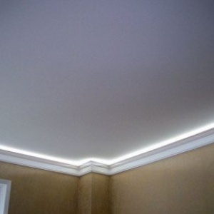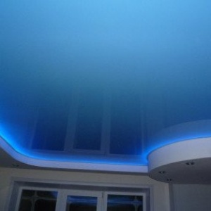 Что собой представляет потолок с подсветкой? Натяжной потолок – это подвесная конструкция, в которой огромная роль отводится организации освещения. Одной из популярных моделей является натяжной потолок с контурной светодиодной подсветкой по периметру. Такой тип освещения недорог и прост в монтировании. Светодиодная лента клеится к стене несколькими сантиметрами ниже натяжного потолка, а чтобы ленту не было заметно снизу, маскируется декоративным плинтусом. В случае монтажа двухуровневого натяжного потолка, диодная подсветка располагается на переходной ступеньке.