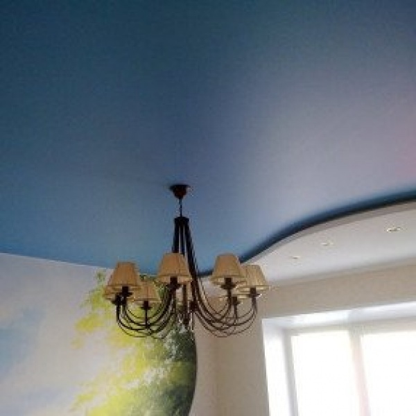 Преимущества бесшовного потолка. Отсутствие видимых мест соединений (швов) позволяет создавать идеально ровные потолочные поверхности и делать помещение гармоничным, завершенным, приятным для глаза. Основное достоинство бесшовных потолков из ПВХ плёнки – это выбор цветов (порядка 120 оттенков всех цветов радуги). По своим декоративным возможностям бесшовные потолки из ткани пока ещё уступают плёночным, но с успехом используются при создании особого неповторимого дизайна помещения. Благодаря особой нежности и сдержанности, а также приятной матовой фактуре, они отлично смотрятся в любом классическом интерьере. Тканевое полотно после нескольких лет службы можно перекрасить в любой цвет, и оно будет радовать глаз, как только что установленное. На тканевые полотна прекрасно ложится фотопечать и ручная роспись акриловыми красками или маслом. Тканевый бесшовный потолок очень хорошо поглощает все посторонние звуки.
